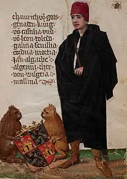 On 23 July 1433, John II granted the town of Cuéllar to Constable Álvaro de Luna, who swore an oath of homage to its inhabitants on 3 October of the same year. The following year he still held the title of Lord of Cuéllar.[8] Curiously, on 24 October of the same year, 1433, Don Fadrique de Luna, son of Martín I of Sicily, handed over the lordship of Cuéllar to his sister Violante de Aragón, so that there were two lords of the town at the same time.[9] This anomaly can only have one explanation: Don Fadrique would have fallen out of favour with the king as early as July 1433 and dispossessed him of the villa, giving it to Álvaro de Luna; renegade, Don Fadrique, considering his lordship in danger, ceded it to his sister Violante, and so we find both lords at the same time.