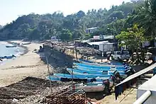 Punta Maldonado is a small cape, which is the furthest point east of the state of Guerrero. It is an important fishing port, especially of rock lobster as well as its large Afro-Mexican population.[8][9] The men go out to sea at night to fish in shifts that can last up to fifteen hours every day. It has a small antique lighthouse very near the border with Oaxaca.[8]