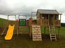 A cubby-hole, cubby-house or cubby is a small play house, or play area, for children.[2] This may be constructed by the children themselves and used as a place of play.[3] Children may have a small shed, play-house or tent which they use as a cubby-house.[4] Children might build their own in various places in the house or garden, or have a pre-fabricated cubby. An Australian fictional treatment of the quest for the perfect cubby can be found in Ursula Dubosarsky's The Cubby House, illustrated by Mitch Vane.[5]