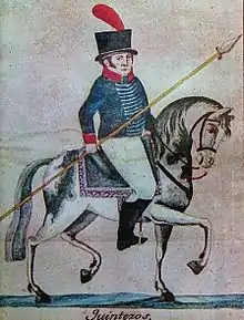 The Corps of Quinteros and Labradores had two squads with volunteers from the haciendas of Buenos Aires. They were divided into six companies, to fulfill surveillance missions.[4] Its armament consisted in spears, swords and some pistols and carbines, provided by farmers.[5]