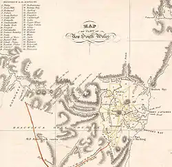 The name Cumberland was conferred by Governor Arthur Phillip in honour of Prince Henry Duke of Cumberland and Strathearn at a gathering to celebrate the birthday of his brother, King George III, on 4 June 1788.[1] The county has been marked on maps since the start of the colony, as shown along the key on a 1789 map describing Port Jackson as being within the county of Cumberland. In the nineteenth century, parts of the county were in the South and North Riding electoral districts from 1856 to 1859, which were replaced by Central Cumberland. There was also the Cumberland Boroughs electoral district.