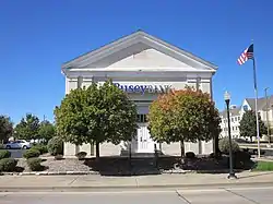 The Cumberland Presbyterian Church, also known as the Peoria Musicians Club or Musicians Hall, is the oldest standing church building in Peoria, Illinois, United States. The church was constructed in 1856 as the First Cumberland Presbyterian Church. It was used by various churches and a synagogue until 1913, when it was bought by the American Federation of Musicians Local 26. The building was added to the National Register of Historic Places on March 18, 1980.[2][1] The building is also a City of Peoria Historic Landmark as of March 1996.[3] It is now a branch of Busey Bank.