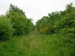 Above the station in 1860 was a cottage, called Standalane, lying on the left hand side of the old road to Springside, which is now closed, as a new road has been made closer to Irvine for traffic safety reasons. Standalane's position in 1897 is shown as being almost on the mineral line; The OS maps after this date do not show it at all. In 1776, plate 45 of G. Taylor and A. Skinner's 'Survey and maps of the roads of North Britain or Scotland' shows 'Standalone' marked, so the dwelling was of some significant antiquity. The old sandstone parapet of the bridge overlooking the site of Cunninghamhead railway station has many naive carvings on it, made over the years by local children and pupils from the local school as they waited and watched the old steam and diesel trains going by.