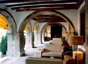 The coat of arms should be surrounded by the collar of the Order of the Golden Fleece, instituted in 1429 by Philip III, Duke of Burgundy, in France and introduced in Spain by the consort king of Castile Philip the Handsome, in 1504. But in the coat of arms the collar does not appear complete because the size of the stone did not allow it. This stone was chiselled at the end of the 17th century.