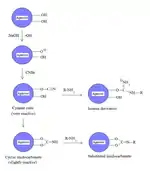 Cyanogen bromide is a common reagent in organic synthesis.[5] As stated earlier, the reagent is prone to attack by nucleophiles such as amines and alcohols because of the electrophilic carbon. In the synthesis of cyanamides and dicyanamides, primary and secondary amines react with BrCN to yield mono- and dialkylcyanamides, which can further react with amines and hydroxylamine to yield guanidines and hydroxyguanidines. In the von Braun reaction, tertiary amines react with BrCN to yield disubstituted cyanamides and an alkyl bromide. Cyanogen bromide can be used to prepare aryl nitriles, nitriles, anhydrides, and cyanates. It can also serve as a cleaving agent.[10] Cyanogen bromide is used in the synthesis of 4-methylaminorex ("ice") and viroxime.