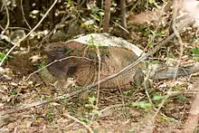 The Anegada ground iguana has also been successfully bred in captivity at the San Diego Zoo and the Fort Worth Zoo.[12] Both zoos have actively been working with the British Virgin Islands on a joint-recovery program started in 1997 on Anegeda Island.[12] 120 iguanas have been raised at the facility for release into the wild.[12] Hatchlings are fed and protected so they can be "headstarted" for the wild and not fall prey to feral dogs and cats.[12] This offsets the juvenile mortality rate and is accompanied by field research, nest site protection, and monitoring of released animals.[12][16]