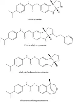 - ↑ Kamal MA, Al-Jafari AA, Yu QS, Greig NH (February 2006). "Kinetic analysis of the inhibition of human butyrylcholinesterase with cymserine". Biochimica et Biophysica Acta (BBA) - General Subjects. 1760 (2): 200–6. doi:10.1016/j.bbagen.2005.10.003. PMID 16309845.