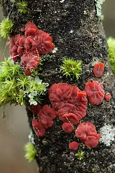 Cytidia salicina commonly known as Scarlet Splash is a species of Fungus that is found growing on willows and other deciduous woody plants in Europe.[8] The spores are 12-18x4-5 um.