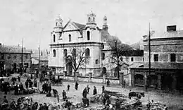 There were 12,000 Jewish people in Częstochowa at the turn of the century, about 29% of the population. Notably, the relations between Jews and Poles in the town were good.[4] "Products of Jewish goldsmiths – wrote Father Jan Związek – adorned not only the synagogue interiors, but also some Catholic churches."[5] However, bloody anti-Russian disturbances began in Częstochowa already in May 1894 in which 2,200 workers participated.[6] The relations with the occupational forces reached its lowest point in 1905 when many striking workers were killed by the Russians, many others arrested, and sent to Siberia.[6]