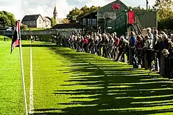 In the summer of 2013 Star joined the newly formed Lowland League. In the inaugural season of the league Star finished a creditable third and though 2013–14 was not trophy laden like the previous two seasons, significant progress was made on the park with some excellent results and performances. There were big disappointments as well, none more so than a second SFA South Region Challenge Cup final defeat in a row, this time to East Kilbride (0–2) at Palmerston.[2] The following season the club finished fourth in the league but again missed out on silverware in the cups. Manager Paul McGinley announced in February that he would be stepping down at the end of the season.[3] Darren Kerr was named as the new boss for 2015–16 season. In his four years in charge, Star won the South of Scotland Challenge Cup twice (2016–17 & 2017–18)[4] and held on to their Lowland League status. At the end of season 2018–19 Kerr left the club by mutual consent[5] and was replaced by Ritchie Maxwell, who had enjoyed a highly successful nine-year spell as a player at Islecroft.[6]