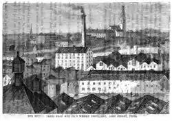In 1853, Murray rebuilt and significantly extended the distillery, expanding onto neighbouring streets.[1] By the late 1860s, the distillery had grown to occupy 3 acres, consisting of a brewhouse, distillery and maltings on John Street; granaries on Leitrim Street; and eight bonded warehouses scattered across John Street, Leitrim Street and Watercourse Road.[1] According to accounts from the time, whiskey from the distillery, some of which was aged for seven years or more, was mainly exported "to the colonies".[1] In particular, it was said that in Australia the whiskey sold at a premium to other whiskeys.[1]