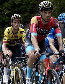 Damiano Caruso (born 12 October 1987) is an Italian professional road bicycle racer, who rides for UCI WorldTeam Team Bahrain Victorious.[4] A stage winner at both the 2021 Giro d'Italia and the 2021 Vuelta a España, Caruso was also the 2008 under-23 Italian national champion for the road race.[5] He competed at the 2020 Summer Olympics, in the road race.[6]