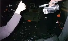Yamantaka Eye's noise project Hanatarash was notable for its dangerous live shows, the most famous instance being when the Japanese artist drove an excavator through the venue at the back of the stage. There were also reports of audience members being required to fill out waivers before shows to prevent the band or the venue being sued in case of any potential danger caused to them.[6]