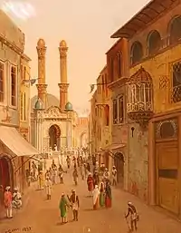 He sketched and painted in the northeastern United States,[15] including Maine, the Hudson River Valley, and Connecticut.[16] He also continued to work in adjacent Canadian provinces.[17][18] Grose was active as a painter in the Rocky Mountains area from the 1860s to the 1880s.[19] Other American locations included Florida and the Grand Canyon.[13] Some of his works deriving from his travels to India were highly rated by contemporaries,[13] and his painting Lalla Rookh was particularly celebrated.[13][20] Grose was evidently successful as most of his canvases were sold before he completed them.[13]