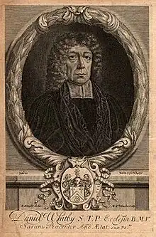 Daniel Whitby (1638–1726) was a controversial English theologian and biblical commentator. An Arminian priest in the Church of England, Whitby was known as strongly anti-Calvinistic and later gave evidence of Unitarian tendencies.