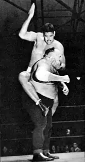 He came to Singapore in 1947, where he worked in a drum-manufacturing mill and began his wrestling training under Harnam Singh in the Great World Stadium.[10] As an adult he was 6 feet 2 inches (1.88 m) tall,[2] weighed 127 kilograms (280 lb) and had a chest measurement of 53 inches (130 cm). Due to his physique, he was encouraged to take up pehlwani, an Indian style of wrestling, in which he trained for several years. After switching to professional wrestling, he competed around the world with opponents such as Bill Verna, Firpo Zbyszko, John Da Silva, Rikidōzan, Danny Lynch and Ski Hi Lee. His flooring of King Kong is still remembered.[11]