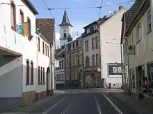 Alt-Eberstadt is the oldest part of Eberstadt. Contrary to Villenkolonie the houses here are predominantly build wall-on-wall. Some houses in Oberstraße and Heidelberger Landstraße are older than 300 years.[3] Many of these old buildings provide an insight into an agricultural past of the village. Along the Heidelberger Landstraße are three notable points in Alt-Eberstadt, all of them are also tramstations.