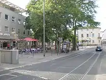 Trams in Darmstadt service Eberstadt, lines 1, 6 and 7 travel to Eberstadt. Lines 6 and 7 continue on to Alsbach-Hähnlein