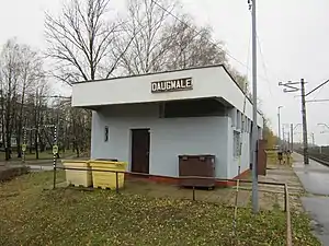 Daugmale Station is a railway station on the Riga – Daugavpils Railway.[1] Currently, no diesel trains to Daugavpils stop at the station.[2] It is only served by electric trains to Ogre, Lielvarde, and Aizkraukle. [3]