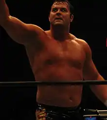 On August 13, 2012, New Japan Pro-Wrestling announced that Smith would be returning to the promotion the following month as a member of Minoru Suzuki's Suzuki-gun stable, forming a regular tag team with stablemate Lance Archer.[91][92] Smith said that New Japan wanted a huge monster as Archer's partner. Also, he received a good offer from All Japan Pro Wrestling, but he chose NJPW due to the previous relationship.[78] Smith wrestled his return match on September 7, when he, Lance Archer, Minoru Suzuki and Taka Michinoku were defeated in an eight-man tag team match by Hiroyoshi Tenzan, Satoshi Kojima, Togi Makabe and Yuji Nagata, following a disqualification.[93] On September 9, Smith submitted IWGP Tag Team Champion Hiroyoshi Tenzan in another eight-man tag team match, after which he and Archer, dubbing themselves K.E.S. (Killer Elite Squad), made a challenge for his and Satoshi Kojima's title.[94] On September 24, New Japan renamed Smith "Davey Boy Smith Jr.".[6][95] On October 8 at King of Pro-Wrestling, K.E.S. defeated Kojima and Tenzan to win the IWGP Tag Team Championship.[96][97] K.E.S. made their first successful title defense on November 11 at Power Struggle, defeating Tenzan and Kojima in a rematch.[98][99] From November 20 to December 1, K.E.S. took part in the round-robin portion of the 2012 World Tag League, finishing with a record of four wins and two losses, advancing to the semifinals of the tournament in the second place in their group.[100][101] On December 2, K.E.S. defeated Always Hypers (Togi Makabe and Wataru Inoue) to advance to the finals of the tournament.[102] Later that same day, K.E.S. was defeated in the finals of the 2012 World Tag League by Sword & Guns (Hirooki Goto and Karl Anderson).[102] On January 4, 2013, at Wrestle Kingdom 7 in Tokyo Dome, K.E.S. defeated Sword & Guns in a rematch to retain the IWGP Tag Team Championship.[103][104] On February 10 at The New Beginning, Smith and Archer defeated Tenzan and Kojima for their third successful defense of the IWGP Tag Team Championship.[105] On March 11, Smith entered the 2013 New Japan Cup, defeating IWGP Intercontinental Champion Shinsuke Nakamura in his first round match.[106] Smith's main event win over the former three-time IWGP Heavyweight Champion was referred to as the biggest of his career.[107] Six days later, Smith advanced to the semifinals of the tournament with a win over Yujiro Takahashi.[108] On March 23, Smith was eliminated from the tournament in the semifinals by Hirooki Goto.[109] On April 5, Smith and Archer made their fourth successful defense of the IWGP Tag Team Championship against Shinsuke Nakamura and Tomohiro Ishii.[110] Two days later at Invasion Attack, Smith unsuccessfully challenged Nakamura for the IWGP Intercontinental Championship.[111][112] On April 20, Smith and Archer defeated Ryan Genesis and Scot Summers in Houston, Texas to not only retain the IWGP Tag Team Championship, but to also win the NWA World Tag Team Championship.[113] On May 3 at Wrestling Dontaku 2013, K.E.S. lost the IWGP Tag Team Championship back to Tencozy in a four-way match, which also included Takashi Iizuka and Toru Yano, and Manabu Nakanishi and Strong Man, though neither Smith nor Archer was involved in the finish.[114][115] K.E.S. received a rematch for the title on June 22 at Dominion 6.22 in a three-way match, which also included Iizuka and Yano, but were unable to regain the title, when Kojima pinned Archer for the win.[116][117] On August 1, Smith entered the 2013 G1 Climax.[118] The tournament concluded on August 11 with a match, where Smith was defeated by his tag team partner Lance Archer, costing him a spot in the finals and ending his tournament with a record of five wins and four losses.[119][120]