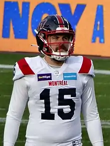 Upon entering the 2021 CFL Draft, Côté was drafted in the fifth round, 45th overall, by the Montreal Alouettes and signed with the team on June 2, 2021.[5] He beat fellow kickers Tyler Crapigna and Félix Ménard-Brière during training camp to win the job as the team's placekicker to open the season.[6] He played in his first professional game on August 14, 2021, against the Edmonton Elks where he was successful on three of his four field goal attempts, with the lone miss coming from a bad snap from centre.[7] He also handled the team's kickoffs where he had four kicks with a 64.8-yard average.[7] Overall for the 2021 season, he played in 14 regular season games where he made 32 out of 39 field goal attempts and 32 of 34 conversions.[8]