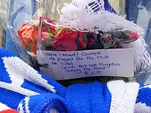 The news of Cooper's death was met with widespread sadness from across the country and the footballing world, much of which is still felt today. Supporters of Clydebank, Rangers and Motherwell left tributes outside their respective grounds.[69] Jock Wallace Jr. (who had signed Cooper for Rangers in 1977) said: "My feelings go out to his family and loved ones, who will have to be strong through this ordeal." The (then) Scottish Football Association chief executive Jim Farry stated: "It is tragic that one with such skills and knowledge will no longer be able to impart them to young players."[74]