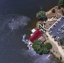 With 65 mineral springs, the Daylesford-Hepburn Springs region accounts for more than 80 per cent of Australia’s known mineral water springs.[15] As a result, the region has a number of spa developments including Hepburn Bathhouse & Spa, Mineral Spa at Peppers Springs Retreat and Salus Spa, Lake House. The town is also known for hosting a number of annual events, including the ChillOut Festival held during the Victorian Labour Day long weekend in March each year, the largest LGBTQ festival in rural and regional Australia; the Harvest Week Festival; the Lavandula's Festivals; and the Hepburn Springs Swiss Italian Festival celebrating the town's Swiss-Italian heritage.[16] The annual Daylesford Highland Gathering features pipes and drums, a street march, dancing, Scottish Clans, Scottish clubs, stores et. al.[17][18]
