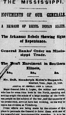 De Benneville Randolph Keim (also known as De B. Randolph Keim) was a 19th-century journalist who became a war-time confidant of Ulysses S. Grant, the commanding general of the Union Army, during the American Civil War, and remained an advisor to Grant through his presidency. In 1870, he was appointed by Grant as a special agent charged with inspecting America's consular offices in Asia, China, Egypt, and South America.[1]