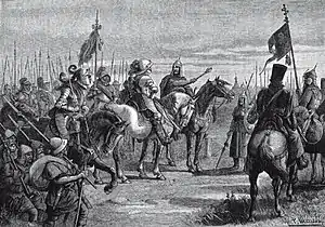 ![]() Mikhail Skopin-Shuisky meets Jacob De la Gardie near Novgorod in 1609 | ||||||||