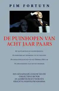 De puinhopen van acht jaar Paars (pronounced [ ˈpœynɦoːpə(ɱ) vɑn ɑx caːr ˈpaːrs] , English: The Wreckage of Eight Years of Purple) is a political non-fiction book released by the Dutch political commentator and aspiring lawmaker Pim Fortuyn in 2002, two months prior to his assassination. In the book, Fortuyn sharply criticizes the then ruling "Purple" coalition government and its direct predecessor (both composed of PvdA, VVD and D66) on nearly all areas of their policies.