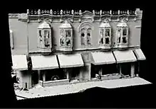 In 1961, the entire town was designated a National Historic Landmark, for its well-preserved collection of late 19th-century frontier architecture. Most of the town's buildings were built before 1900, with only modest subsequent development.[20] The town's population continued to decline through the 1960s and 1970s.[21] Interstate 90 bypassed Deadwood in 1964, diverting travelers and businesses. On May 21, 1980, a raid by county, state, and federal agents on the town's three remaining brothels—"The White Door", "Pam's Purple Door" and "Dixie's Green Door"—accomplished, as one reporter put it, "what Marshal Hickok never would have done",[22] and the houses of prostitution were padlocked.[21] A fire in December 1987 destroyed the historic Syndicate Building and a neighboring structure.[21]
