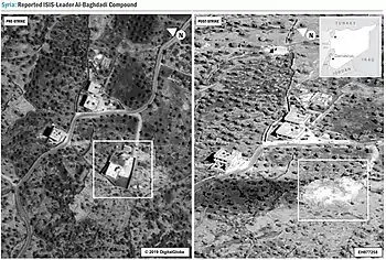![]() Baghdadi's compound, before and after the U.S. special operations raid, 26–27 October 2019 | |||||||