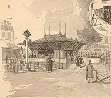 The track was designed by Monsieur Alphand, the general manager of the works, who commissioned Antoine Gaillot and Paul Gallotti of Gaillot et Cie to build the track under the supervision of Monsieur Lion, the exhibition's engineer. The works were led by the Deputy Chief Engineer J. Charton, who was responsible for the metalworking and dealt in particular with the construction of the railway on the Champ de Mars.[3]