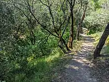 Deer Creek begins at elevation 680 feet just north of Altamount Road and west of Taafe Road in Los Altos Hills, then flows northerly passing under Interstate 280 at the La Barranca Road underpass, where it turns west and parallels Purissima Road, crosses Arastradero Road and Deer Creek Road, before joining the Matadero Creek mainstem just south of Foothill Expressway and east of Page Mill Road.[2] Deer Creek has also been labelled as Purisima Creek on some maps.[3]