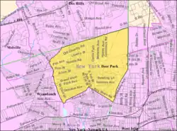 Deer Park is located in the northeastern corner of the town of Babylon.[8] It is bordered to the west by the Babylon hamlets of Wyandanch and Wheatley Heights, to the north by Dix Hills in the Town of Huntington, to the east by Brentwood and Baywood in the town of Islip, and to the south by the hamlet of North Babylon.