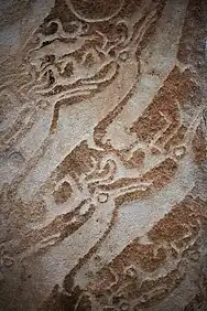Deer stones (Chinese: 鹿石; pinyin: lùshí, also known as reindeer stones), sometimes called the Deer stone-khirigsuur complex (DSKC) in reference to neighbouring khirigsuur tombs,[2] are ancient megaliths carved with symbols found largely in Siberia and Mongolia. The name comes from their carved depictions of flying deer. The "Deer stones culture" relates to the lives and technologies of the late Bronze Age peoples associated with the deer stones complexes, as informed by archaeological finds, genetics and the content of deer stones art.[3]