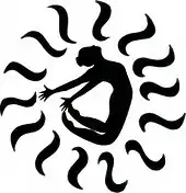 The official symbol of Delta Chi Xi is a combined sun and spiral to represent the unity and connection between dance, service, and academics. The sun is depicted by a silhouette of a dancer in a 'C jump' pose with 14 spirals as sun rays to represent the 14 original charter members.