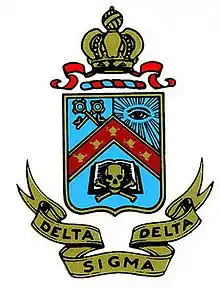 The Greek letters ΔΣΔ represent the letters D.D.S. of the dental degree, although with a transposed sequence.[2] Its colors are blue and garnet. Its motto is "Knowledge, Strength, Justice".
