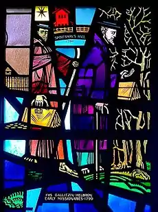 Stained-glass depiction of Father Demetrius Gallitzin and Father Peter Helbron, St. Patrick Church, Canonsburg, Pennsylvania