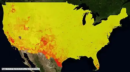 Note: Population estimate of United States excluding overseas armed forces.[30][31]