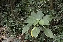 In the Philippines, Dendrocnide meyeniana is commonly referred to as lipa, lipang kalabaw (lit.'carabao lipa', to distinguish it from Laportea interrupta, a nettle shrub locally named lipang aso, the "dog lipa"), or more rarely, apariagua. The city of Lipa in Batangas is named after this plant. Locals distinguish it primarily by the short stinging hairs[2] on its twigs. It is also known as bulan-bulan in regions where Bisayan languages are dominant.[3]
