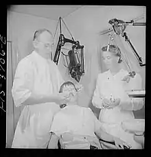 C. Edmund Kells, a pioneering dentist operating from New Orleans, enlisted the first dental assistant.[3][4] The dental field was initially dominated by males, but after this first addition of a female, it was then acceptable for women to seek dental treatment without their husbands. This led to dental assistants of that era also being known as "Ladies in Attendance".[5] Thanks to the addition of women to dentistry, the profession flourished with more and more women seeking treatment and more patients overall receiving care.[4]