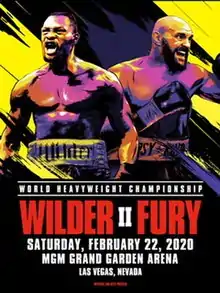 Deontay Wilder vs. Tyson Fury II, billed as Unfinished Business, was a heavyweight professional boxing rematch between undefeated and reigning WBC champion Deontay Wilder and undefeated former unified heavyweight champion Tyson Fury, for the WBC and vacant The Ring heavyweight titles. The event took place on February 22, 2020, at the MGM Grand Garden Arena, Paradise, Nevada. Fury won the bout by seventh-round technical knockout (TKO).[1]