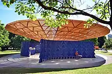 In 2014 Kéré participated to the exhibition Sensing Spaces at the Royal Academy of Arts. In 2016, his work was included in Alejandro Aravena's Venice Architecture Biennial, centered on low-tech construction techniques, traditional materials, and local knowledge.[21] From November 2016 to March 2017 Kéré presented his first monographic exhibition "Francis Kéré. Radically Simple" in Munich at Architekturmuseum der TU Munich.[22] In 2017, the Serpentine Galleries commissioned Kéré to design the Serpentine Pavilion in London.