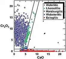 - ↑ Grütter, Herman S.; Gurney, John J.; Menzies, Andrew H.; Winter, Ferdi (2004-09-01). "An updated classification scheme for mantle-derived garnet, for use by diamond explorers". Lithos. Selected Papers from the Eighth International Kimberlite Conference. Volume 2: The J. Barry Hawthorne Volume. 77 (1): 841–857. Bibcode:2004Litho..77..841G. doi:10.1016/j.lithos.2004.04.012. ISSN 0024-4937.