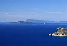 ![]() Othoni (back), Mathraki (left) and Diakopo (front right) as seen from northwest Corfu | |