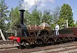 Static Display | Built 1857, latterly owned by the Wantage Tramway. Steamed in 1970s but examination indicated that too much historic material would need replacing to return it to working condition, so remains on static display in 1920s red livery.[6] |