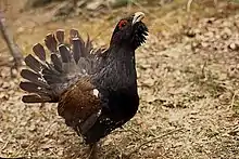 Although absent or rare in some areas where the golden eagle occurs, this is by far the most significant family of birds in the diet of golden eagles, making up 10.3% of their known prey.[10] In Scandinavia and the Baltic States, grouse are the primary prey for these eagles, comprising between 47.6% and 63.3% of their diet,[58][71][72][73][74] and displacing mammals altogether. The main prey species in most of this sizeable area is the largest species of grouse, the western capercaillie (Tetrao urogallus), supplemented by its cousins, the black grouse (Tetrao tetrix) and the hazel grouse (Tetrastes bonasia). However, in the northernmost parts of Scandinavia, these are replaced by the smaller willow ptarmigan (Lagopus lagopus) and rock ptarmigan (Lagopus muta). A study in Belarus showed grouse were the most common family of prey at 47.8% of the eagle diet.[75] In Estonia, the prey base is more varied, but grouse were still the most represented bird family, comprising 18.1%.[76] The red grouse, a race of willow ptarmigan (Lagopus lagopus scotica), and the rock ptarmigan (also called just ptarmigan) occur heavily in the golden eagle's diet in parts of Scotland, up to 47.8% in one study.[10] One paper in Alaska showed that the two ptarmigan species (primarily the more abundant willow) made up 49.1% of the remains in a golden eagle pair's nest, making it the only known study in North America where birds were more prevalent in the diet than mammals.[43] Other reports from Alaska show the willow ptarmigan as secondary prey.[63] In some other areas, grouse are taken only as supplemental prey. A study in the Italian Alps revealed grouse made up 19.4% of nest remains and were the most common avian prey.[66] In eastern Washington state, sooty grouse (Dendragapus fuliginosus) was the second most significant prey species (at 13%) after yellow-bellied marmot.[44] Considered globally, it is likely that every species of grouse is prey of the golden eagle at least somewhere.[10]