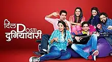 Dil Dosti Duniyadari is a Marathi television sitcom produced by Sanjay Jadhav and Deepak Rane. It started airing on Zee Marathi from 9 March 2015.[1] It revolves around six friends living as paying guests in Mumbai with the home owner's nephew Sujay, in a house they affectionately call "Mazghar".[2] The serial's first season concluded on 20 February 2016. The series second season, Dil Dosti Dobara, was a reboot sequel.[3]