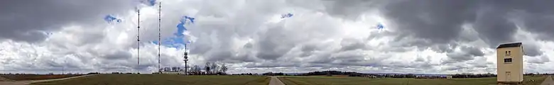 Dillberg transmitter is a transmitting facility of the Bavarian Broadcasting Company (German: Bayerischer Rundfunk) on the 595-metre-high Dillberg mountain west of Neumarkt in der Oberpfalz, Bavaria, Germany. Dillberg transmitter went into service in 1955 for serving the area of Nuremberg with TV and FM radio programmes from a 198-metre-tall guyed mast.